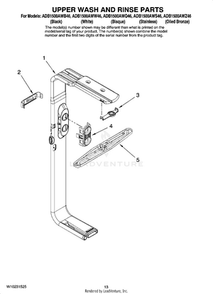 10 - UPPER WASH AND RINSE PARTS, OPTIONAL PARTS (NOT INCLUDED)
